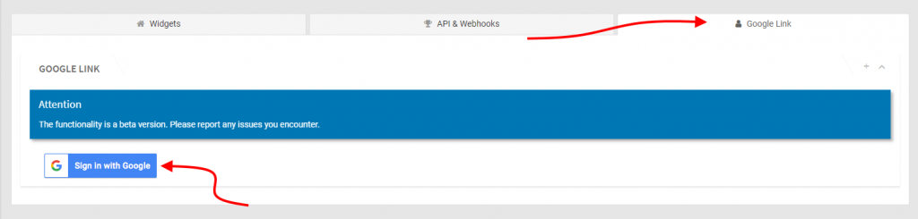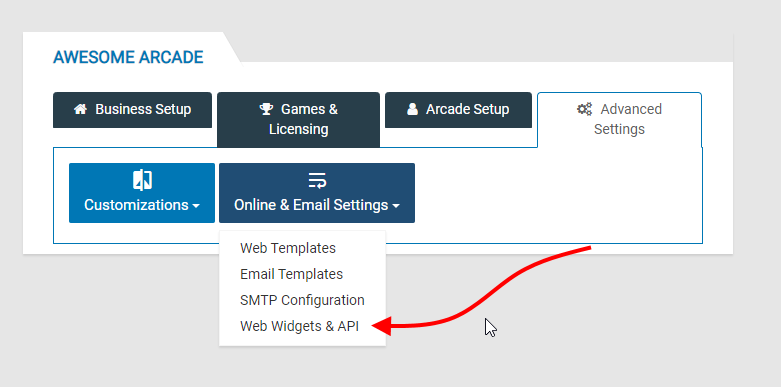 To add a connection between SynthesisVR and Google Calendar so that your booked sessions show up in Google Calendar, fist head over to the Web Widgets & API section: